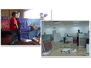 到達(dá)目的地后鋪設(shè)地板保護材料后開始工作;電器類按要求接通電源及其他線路。